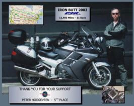 Within the first few miles, Mattson's specially outfitted motorcycle developed a fuel pump problem and he was forced to turn back. It was not a promising beginning. But the next morning, Mattson silenced the skeptics with an unbelievable 18 hours of continuous high-speed riding. He covered 1500 miles and was awarded a medal by the Ironbutt Association.