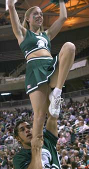 Male cheerleaders have been derided too long. They do the throwing, the heavy lifting - they form the bottom of the pyramid. The best can hurl a hundred pound woman 25 feet into the air (and hopefully catch her). Plus, they get to hang out with cute female cheerleaders all the time. What's so wrong with that?