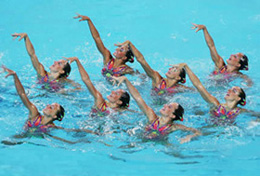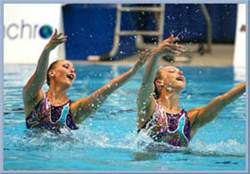 Synchro, as aficionados call it, is actually an anaerobic sport that can be as physically draining as track sprints. The reason: you have to stay underwater for nearly a minute at a time while shoving your friends into the air. For every swimmer that gracefully pops out of the water, there are two or three swimmers beneath her frantically treading water and serving as an underwater table. Those unlucky enough to play the role of the “table” content themselves with the knowledge that their work is important and that if they miss a move or pass out from lack of oxygen havoc can ensue. As Olympic gold medalist Jill Savery put it: “Bones can be broken.”